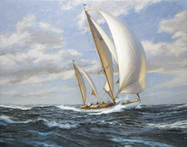 “Dorade” was the catalyst that launched Olin Stephens’ career as a world famous yacht designer | | Dimensions | 24" x 30" | | Media | Oil on canvas |