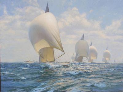 "A close race. "Aurora", "Beatrice" and "America" pass Osborne House, August 22nd, 1851" THE MARINE ART OF A D BLAKEAD Blake's oil paintings range from historical maritime scenes to present day yachting events. His subjects vary from the beautiful historic square-rigged sailing ships and gaff-rigged classic yachts to the modern America's Cup racers. The paintings are often historic yachting harbour scenes, featuring New York, Newport, Nantucket, Marblehead, Boston, Cowes, Isle of Wight, Auckland and Venice; or blue water ocean races. The maritime art of Anthony Blake includes paintings of most of the America's Cup yacht races including the first race around the Isle of Wight won by the yacht "America". AD Blake's oil on canvas paintings are painted in a traditional painterly style. They are beautiful paintings of beautiful scenes. They are characterised by their impression of life and movement. The boats, with their sails, the sea, the sky and the background are exquisite in their details and multiplicity of colours. Some of the paintings have been reproduced as limited edition glicee prints. These editions are very limited and can be personalised with a unique pencil remarque. Please contact Anthony for further information on prints and paintings at adbblake@gmail.com or phone his cell phone +64 212952758. |